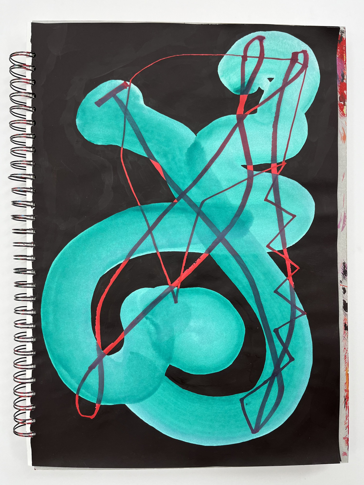acrylic and watercolor on paper, two spiral bound books with 53 sheets each, 42 x 29.5 cm, 17 x 12 inches